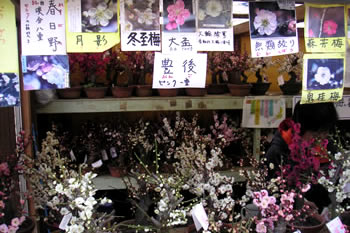 園内では梅の苗木や盆栽が売られています (2007.3.4 撮影) |