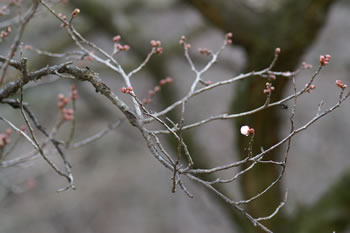 梅:2009.11.28に続いて 白梅が少しずつほころび始めてきました。